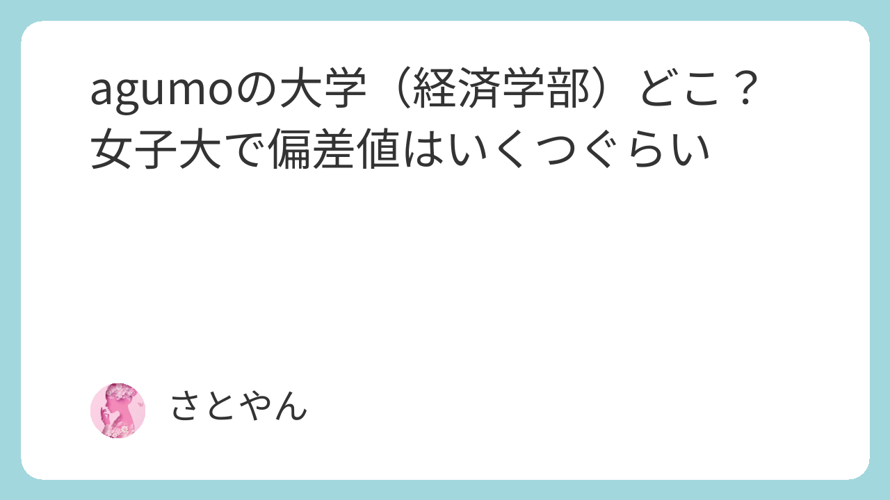 agumoさんの大学と経済学部に関する情報について解説します。ここでは、本人の発言やネットでの推測をもとに大学や学部の実態に迫っていきます。