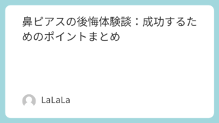 エンタメ 鼻ピアスの後悔エピソードまとめ!成功するためのポイントも紹介 この記事は、鼻ピアスを開けた後に後悔している方や、これから開けようと考えている方に向けて書かれています。鼻ピアスの魅力やリスク、成功するためのポイントを詳しく解説し、後悔しないための情報を提供します。また、実際の体験談や共感する声を通じて、... 2025.08.26 エンタメ