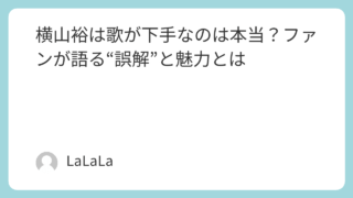エンタメ 横山裕は本当に歌が下手?ファンが語る“誤解”と本当の魅力とは 「関ジャニ∞」のメンバー・横山裕さんに「歌が下手?」という声があるらしいのです。テレビではいつも明るくて面白い彼。でも、本当に歌が苦手なのでしょうか?今回は、そうした声の理由や実際の歌声、そして歌以外の魅力について、わかりやすくまとめました... 2025.08.29 エンタメ