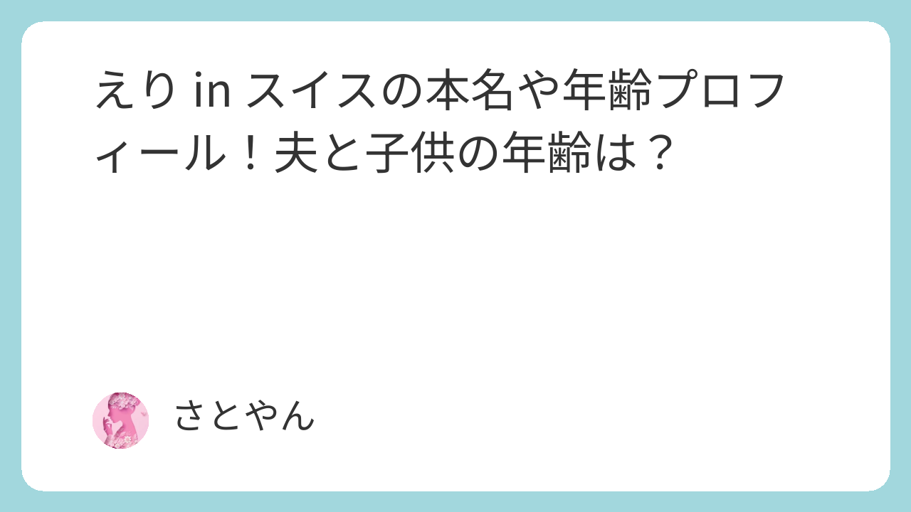仮にえりさんが26歳前後にスイスへ移住し、30歳前後で結婚・出産をしたと仮定すると、現在は36歳前後と考えるのが自然です。