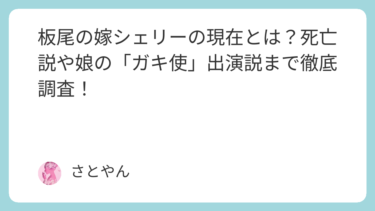 “板尾の嫁”として一世を風靡したシェリーさんは、現在芸能活動から離れ、家族との生活を大切にしていると見られます。死亡説は事実無根であり、近年は娘さんによるSNS発信などから再び注目が集まりつつあります。