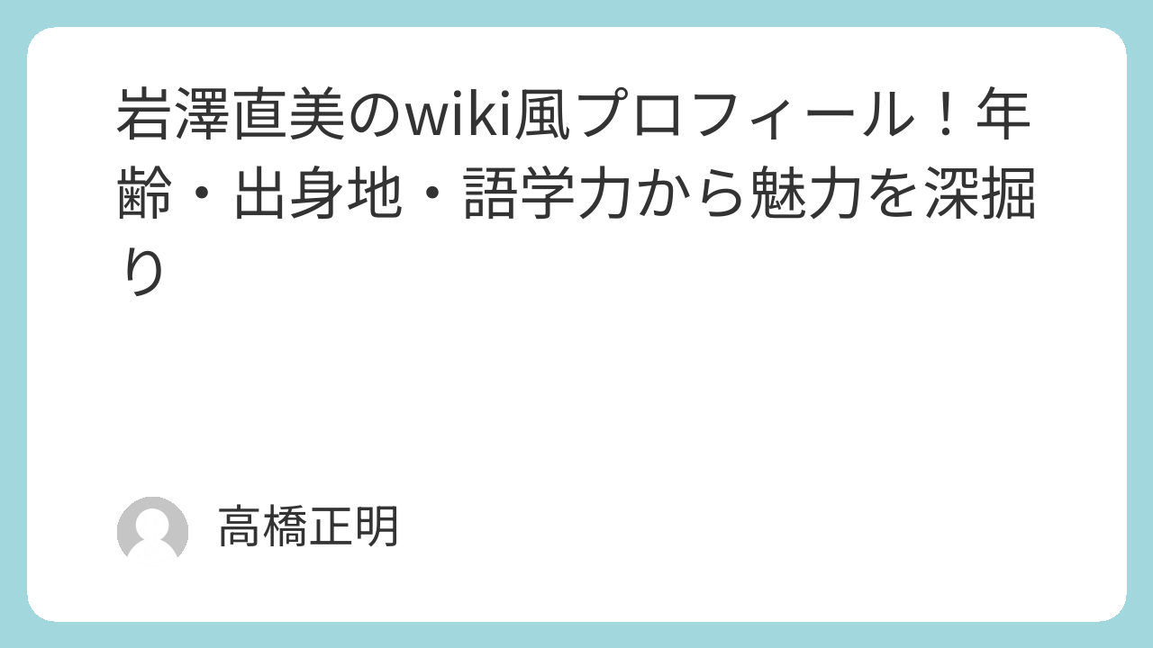 岩澤直美さんのwiki風プロフィールをまとめてみました。