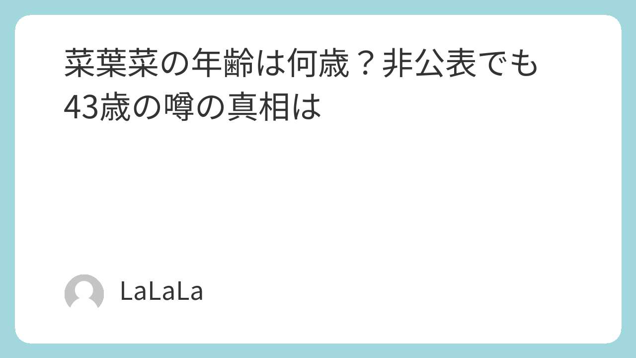- 菜葉菜さんは年齢を公式には公表していない