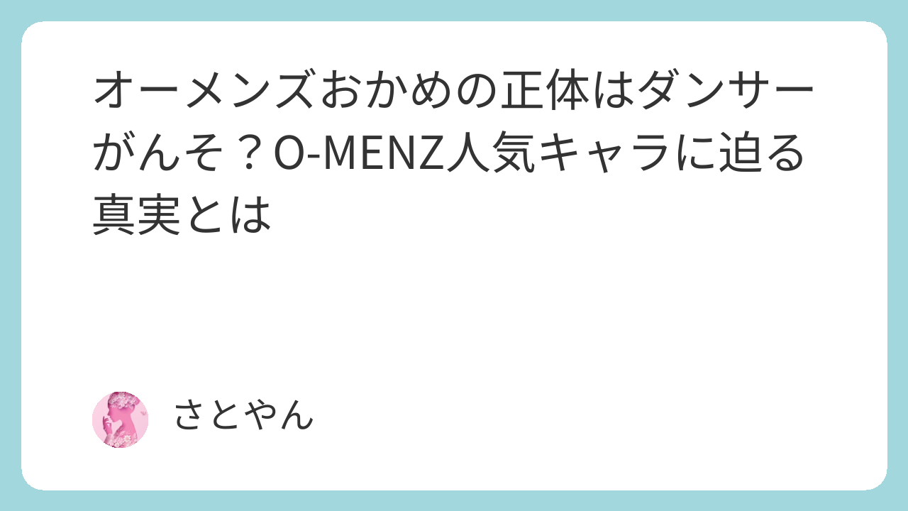 O-MENZ(オーメンズ)は、SNSを中心に注目を集めているパフォーマンスグループです。その中でも特に人気を集めているのが、「おかめ」さんというキャラクター。ファンの間では「癒し系」や「優しさ担当」として親しまれています。