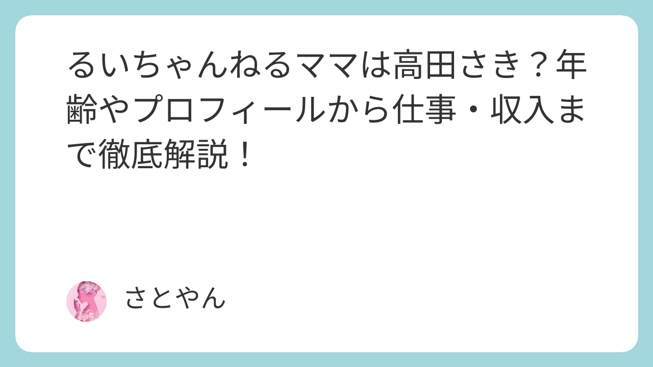 この記事では、「るいちゃんママって実際どんな人?」と気になっている方のために、年齢や本名、出身地、仕事や収入について詳しくまとめました。