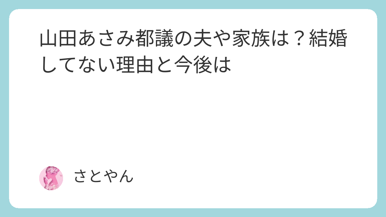 山田あさみ都議は、**「結婚や家族を持たない生き方を選び、キャリアに全力を注いできた女性」**です。