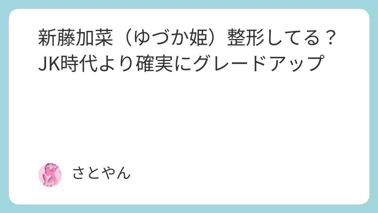 新藤加菜(ゆづか姫)整形してる?JK時代より確実にグレードアップ
